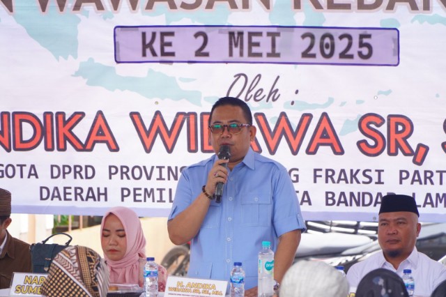 Focusindonesia.id, Bandarlampung – Anggota DPRD Provinsi Lampung dari Fraksi Gerindra, Andika Wibawa, kembali menegaskan pentingnya penguatan ideologi Pancasila di tengah derasnya arus ideologi asing yang berpotensi memecah belah bangsa. Hal ini disampaikannya dalam kegiatan Pembinaan Ideologi Pancasila dan Wawasan Kebangsaan (PIPWK) ke-2 yang digelar di daerah Kota Baru, Kecamatan Tanjung Karang Timur, Minggu (25/5).