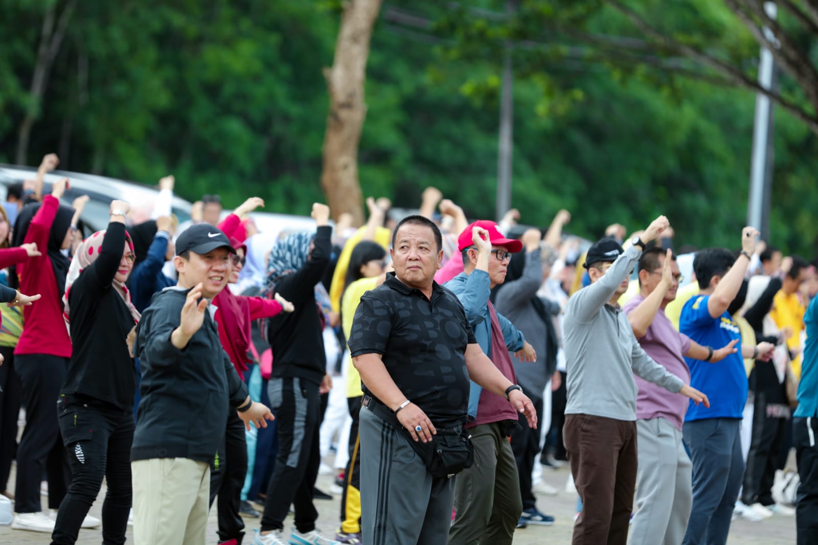 Senam tersebut berlangsung meriah dan lancar dibalut dengan suasana bertajuk Jumat Ceria.
